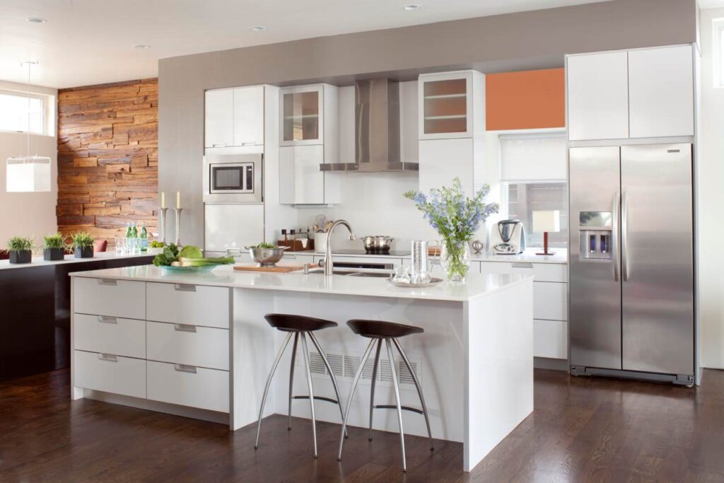 For this reason, white is the most popular choice for kitchens with high glass cabinets.